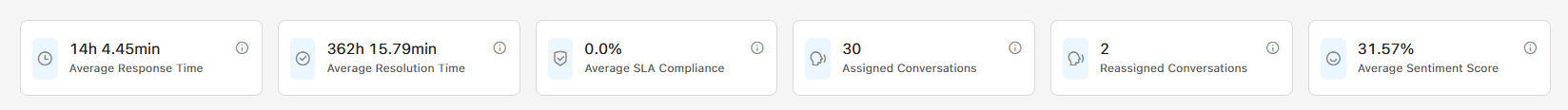 | Average Response Time | Time taken to send the first response in assigned conversations. |