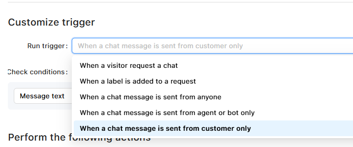 - Triggers only when customers send messages