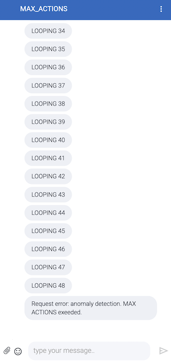 Sometimes you can receive a MAX_ACTIONS exceeded message in your chatbot, something like the following: