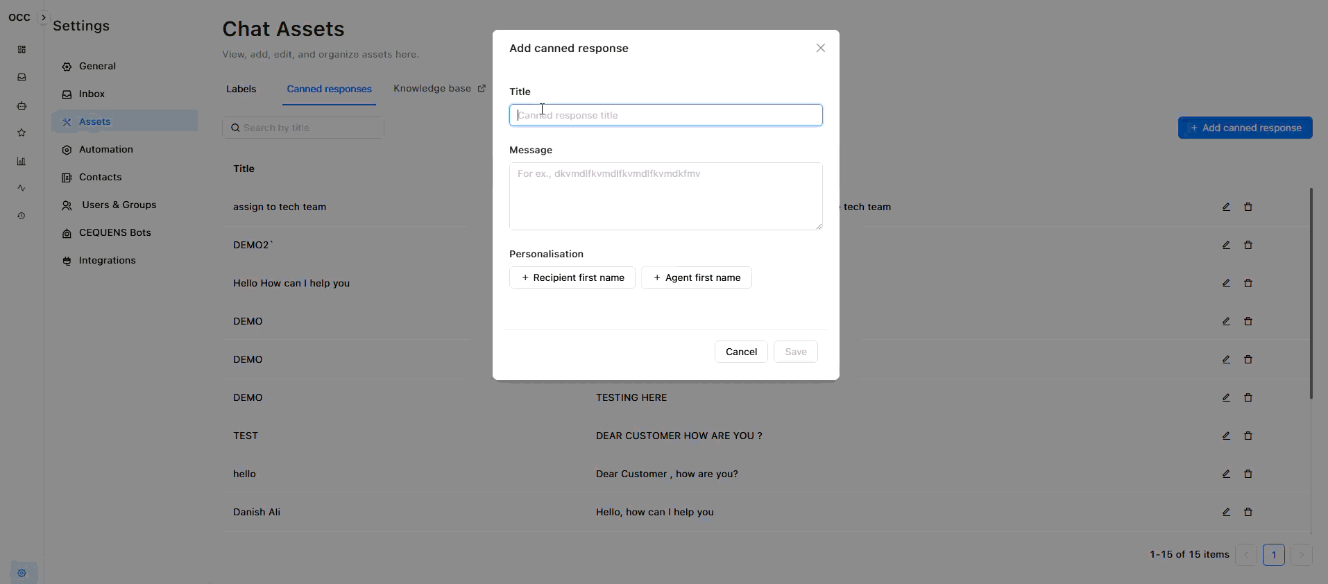 - Go to Settings → Chat Assets → Canned Responses