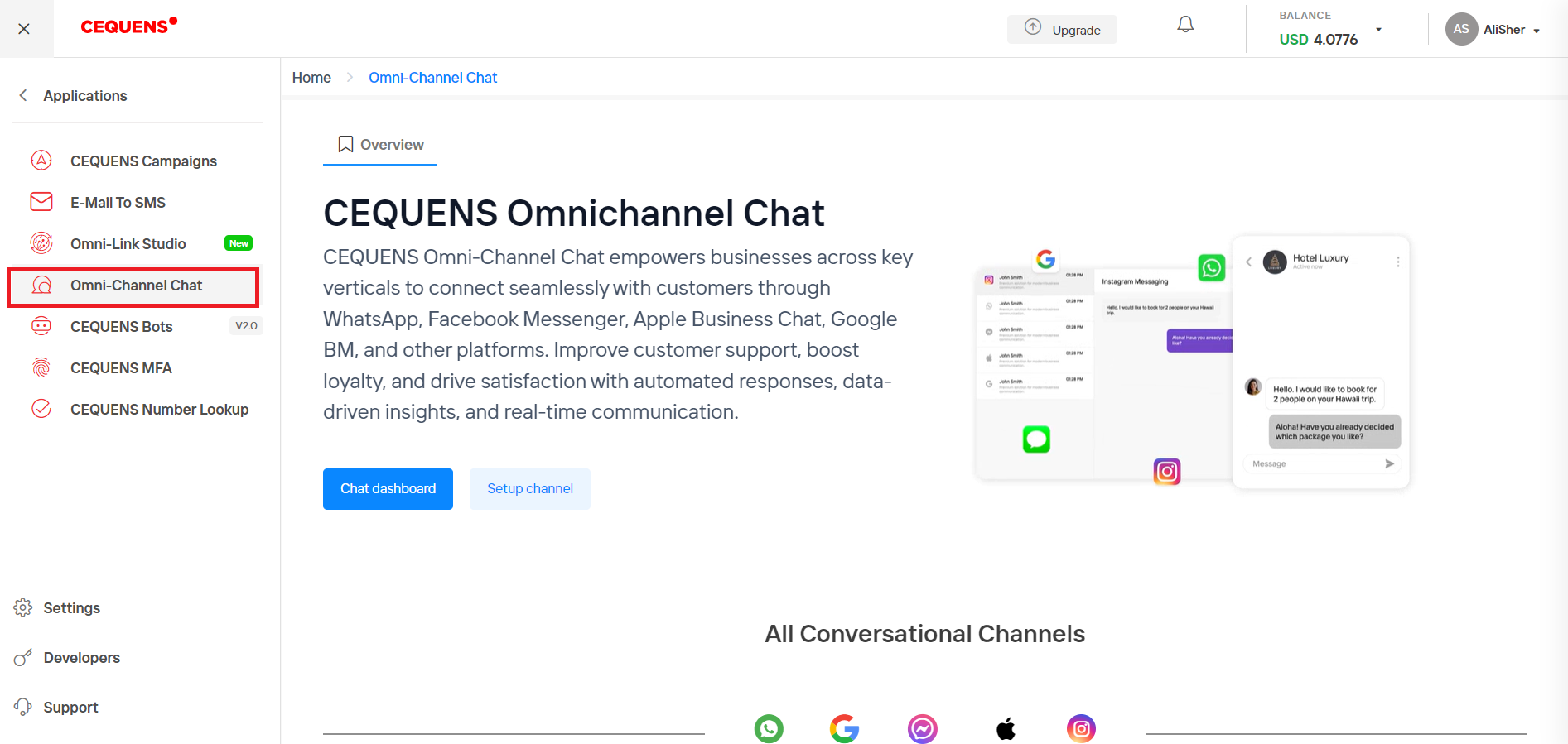 CEQUENS Chat Console To access CEQUENS Chat, you need to login to CEQUENS console and from the left menu, click Applications. Click on Omni Channel Chat option and then click Chat Dashboard. Updated 6 months ago Unleash the power of CEQUENS OCCRequests