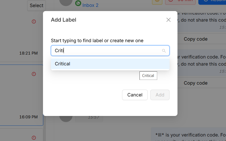 - To add a label to the request, either it can be added from bulk actions or individually within a particular chat.