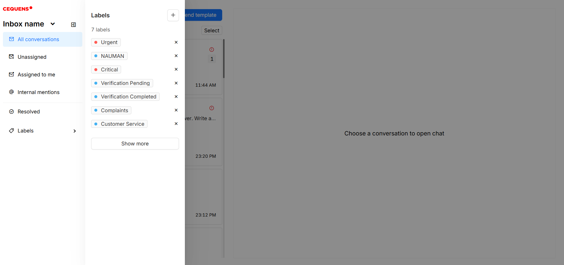 - Add Labels to the conversations. Admins are allowed to create labels. To create a label, click on Labels on left sidebar and then click '+' icon on top.