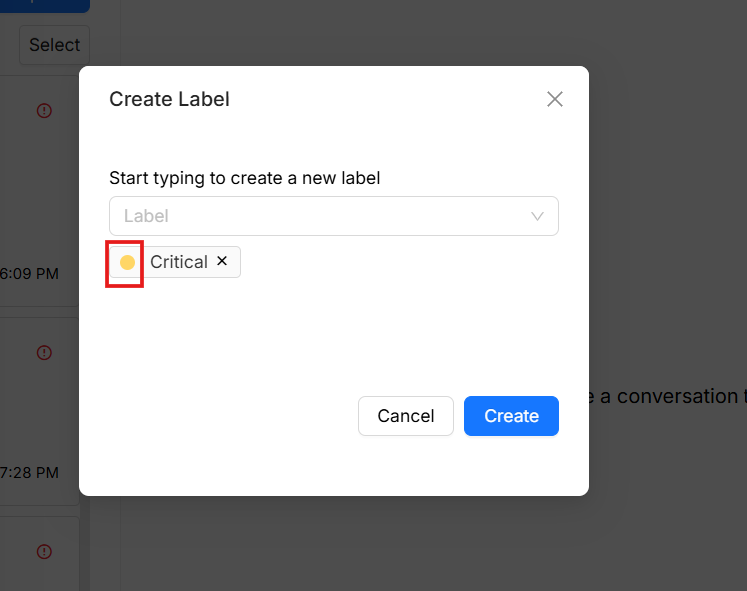 - To change the color of label, click on the color of the label and select the colors from the options. Click on Create button to create the label in the system.