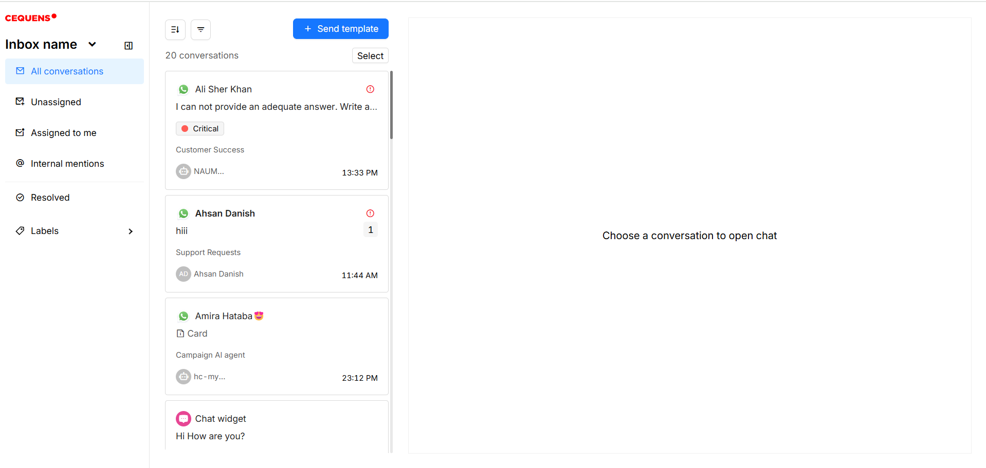 - In the chat window, you can respond to customer queries and manage all conversations. Select the inbox by clicking 'Inbox' dropdown from the left sidebar.