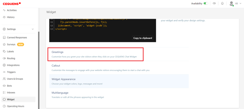 - Enhance user engagement with a personalized touch by setting up greetings on a chat widget.