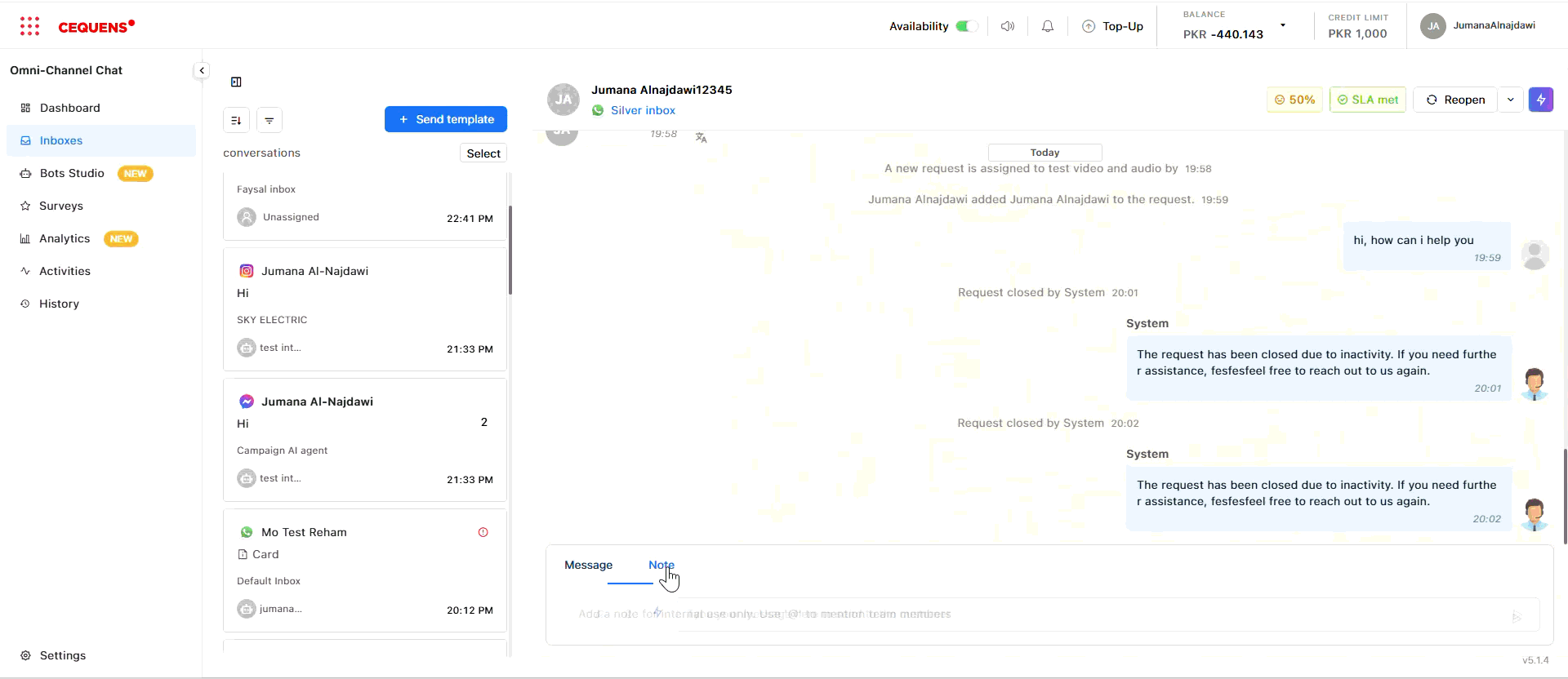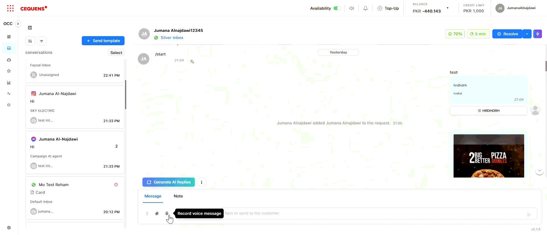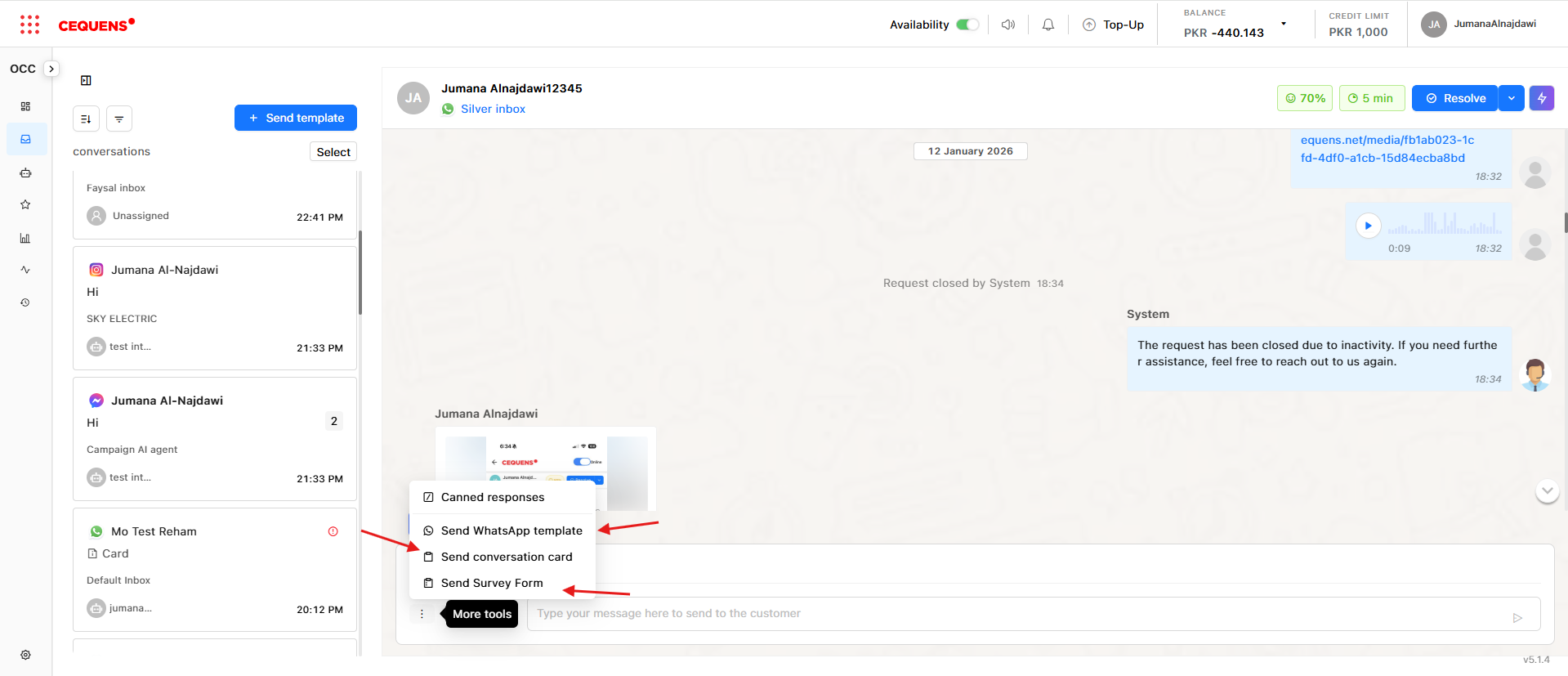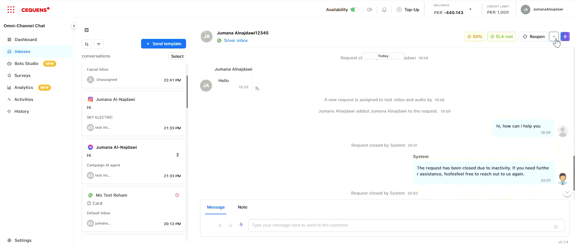- Open a conversation in the Inbox