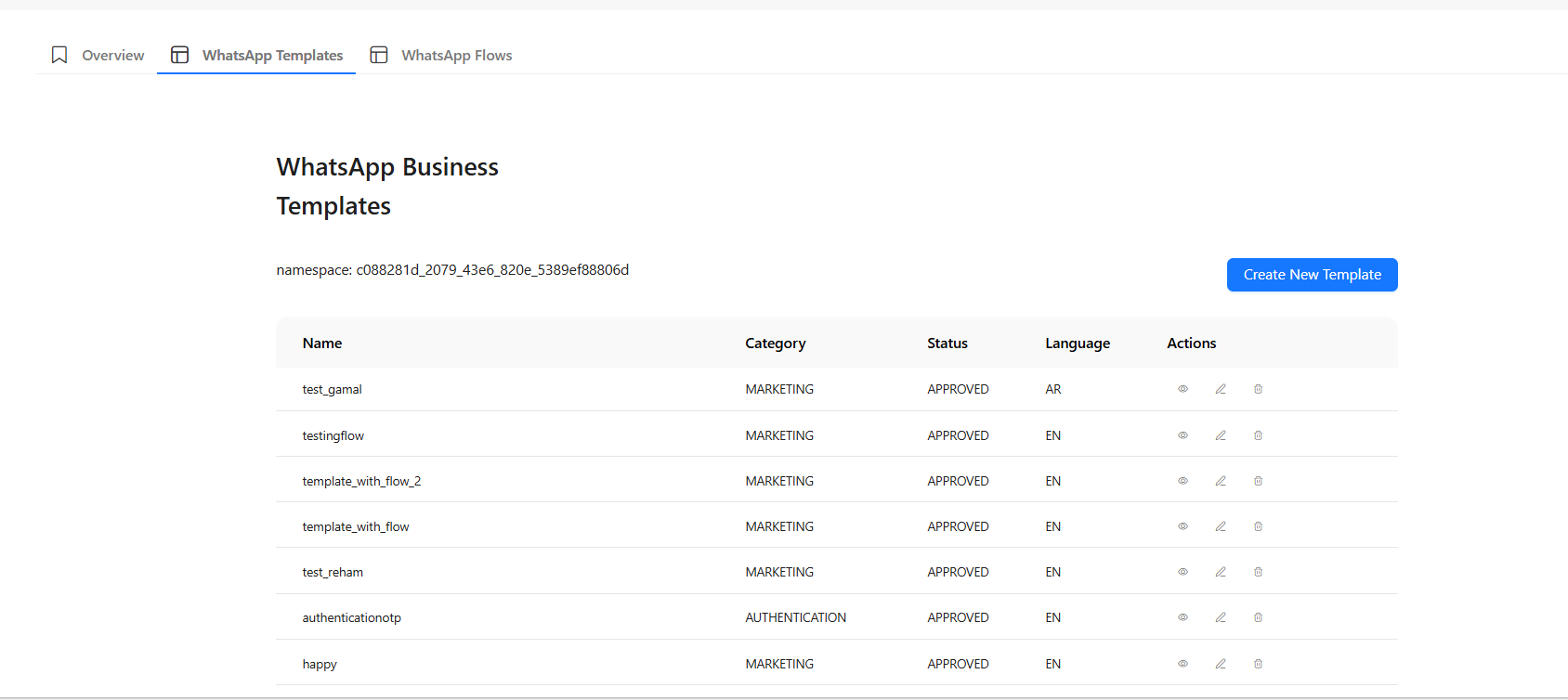 This is your central dashboard for viewing and managing all your WhatsApp templates.
