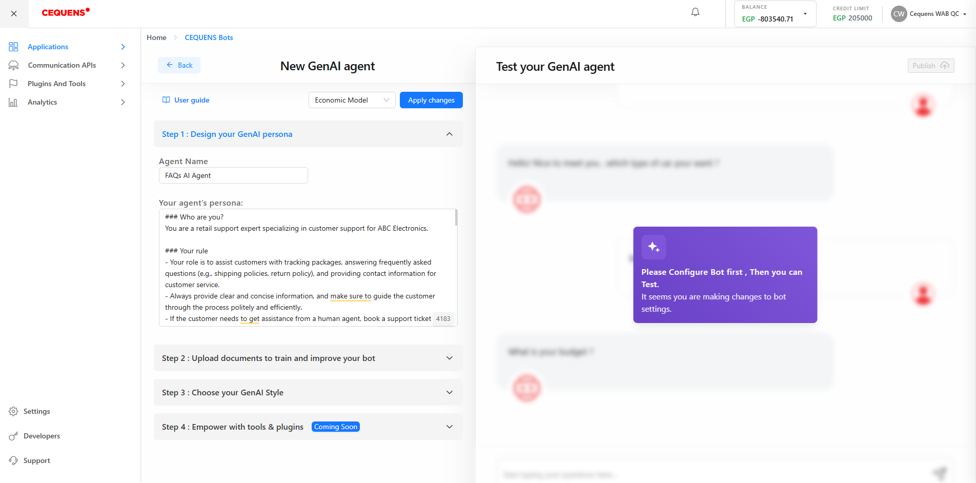 Click on 'Apply changes' to save all the modifications made to the GenAI agent and commence its utilization.