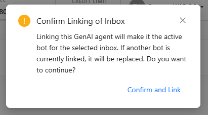 - By confirming the changes, you will disconnect any previous bot from this inbox, and add this AI Agent to the selected inbox