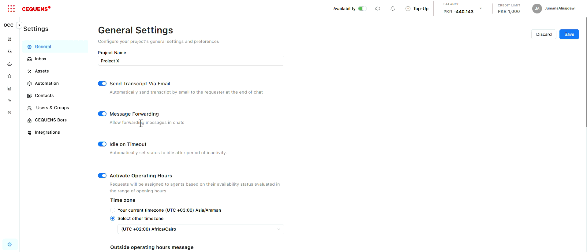 General Settings control project-wide configurations that apply to all inboxes in your OCC instance.