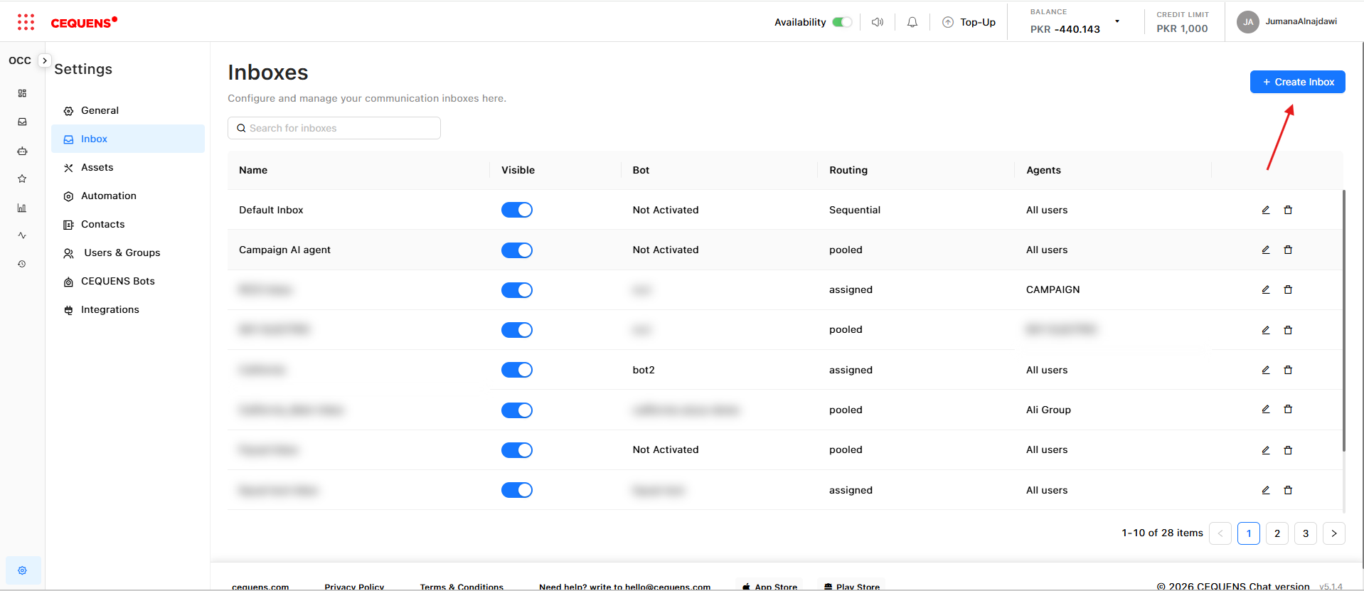Inboxes are the core organizational unit in OCC. Each inbox can be linked to multiple channels, assigned to specific agent groups, and configured with unique settings.