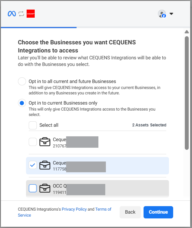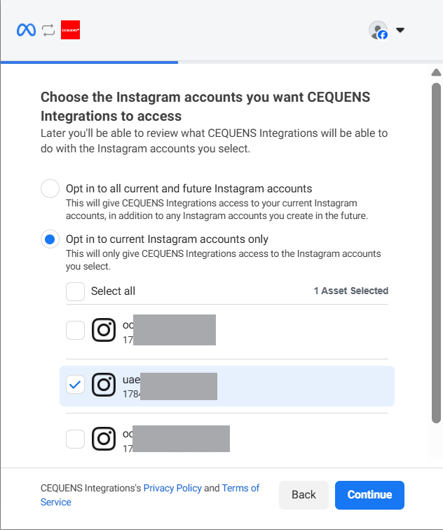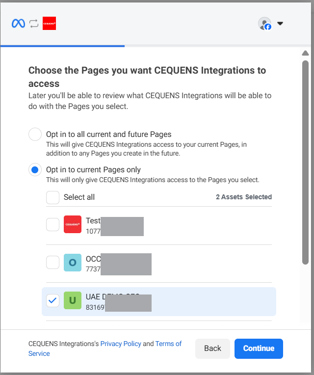 | Select FB Page/s | Select Business Asset/s | Select Insta Page/s |