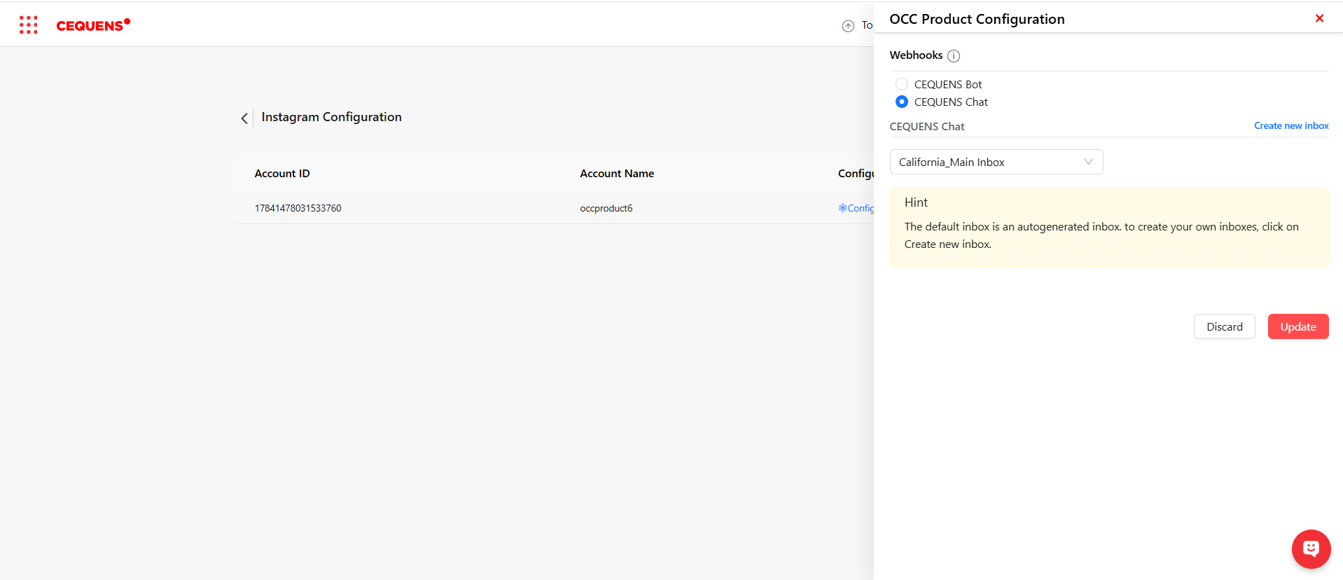 - Link this channel to CEQUENS Omni-Channel Chat (OCC) service.