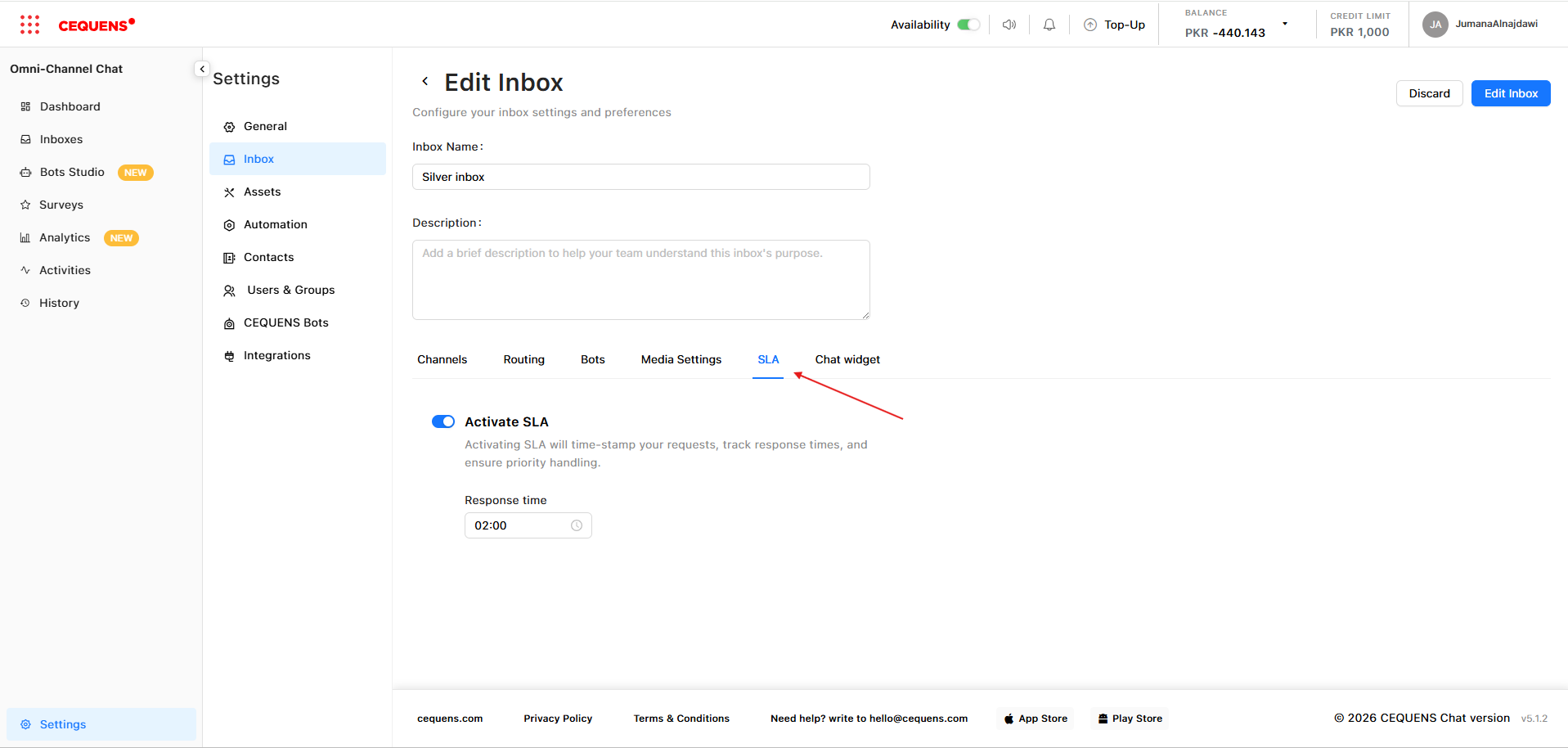 - Go to Settings → Inbox → Select inbox → SLA