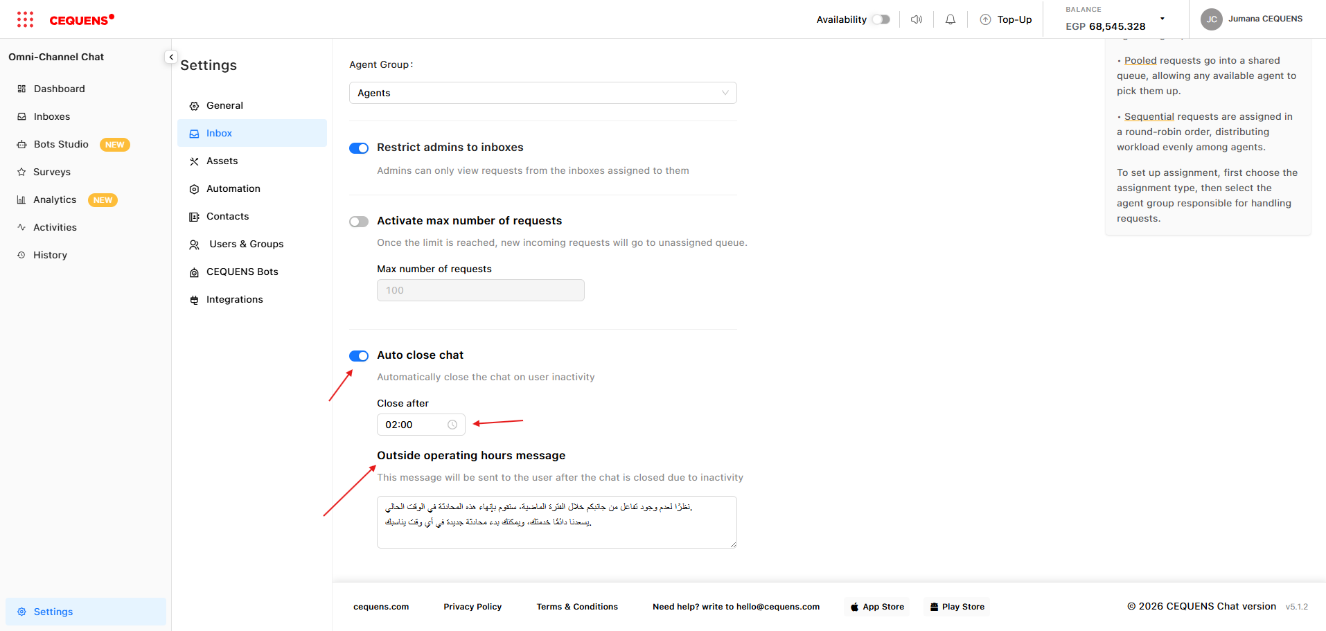 - Go to Settings → Inbox → Select inbox → Routing → Auto Close Chat