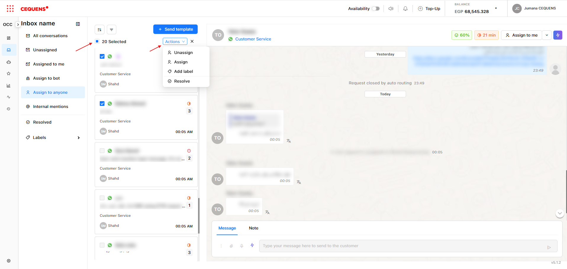 - ✅ Use bulk actions to quickly assign or label multiple conversations