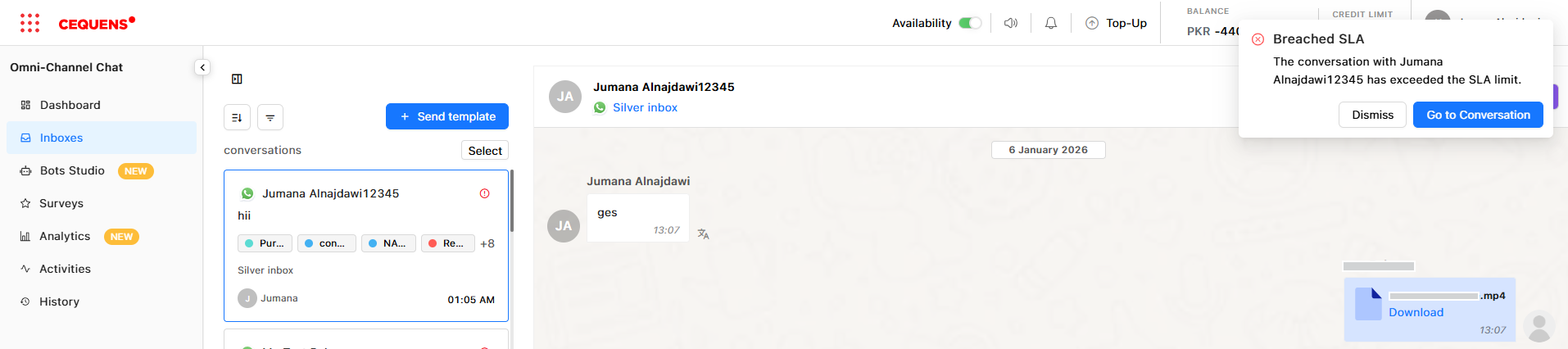 - Real-time notification for breached SLA conversations