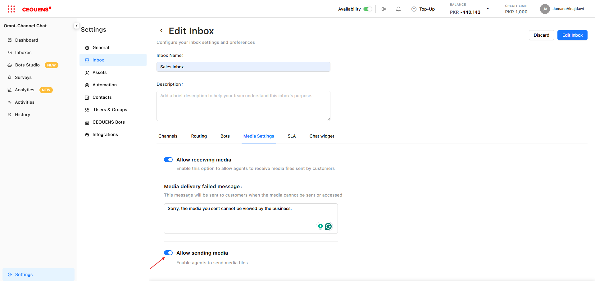 Media settings control whether agents can send files to customers and whether customers can send files to agents. This helps maintain security, compliance, and control over file sharing in conversations.