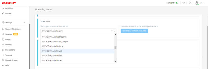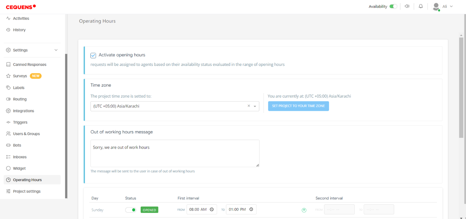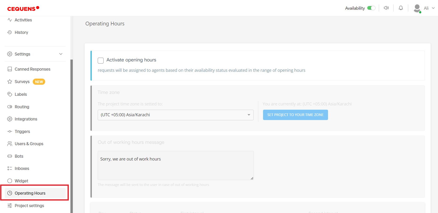 - Tick the checkbox labeled "Activate Operating Hours" to enable this feature.