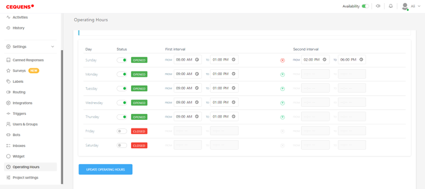 - After configuring the operating hours to your preference, click on the "Update Operating Hours" button to save the changes.