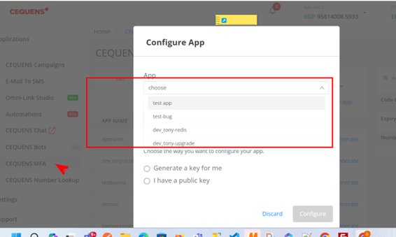 - Select App: In the pop-up window, choose the application you configured in the Push Notification channel.