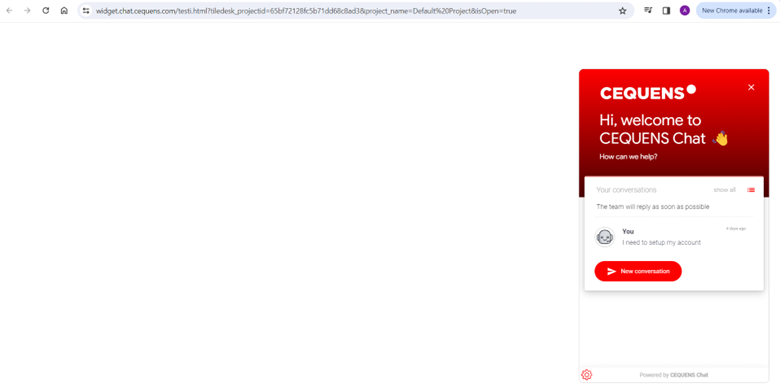 - A new page will open, and you can see the chat widget that will be shown to the visitor.