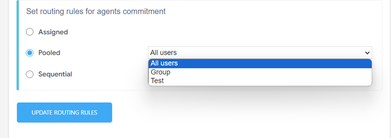 - Specify which group of agents will adhere to the selected routing rules. This allows for customized routing configurations based on team preferences and requirements. Click Update Routing Rules button to save the changes.