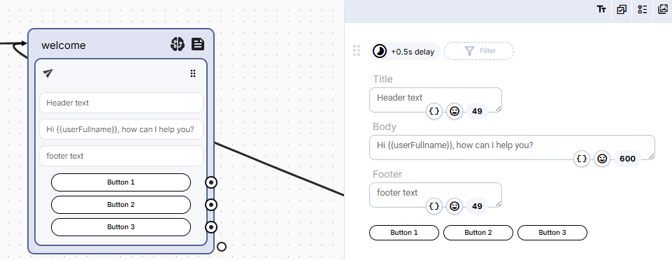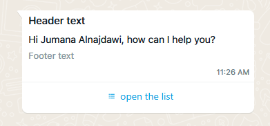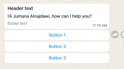 Moreover, consider that all the components sent back to the user can adapt automatically to the channel that the user is using to chat. For example, WhatsApp chats only support up to three buttons, but if you send more than three buttons, the reply adapts the conversation automatically to show the buttons with a pop-up menu instead of single buttons.