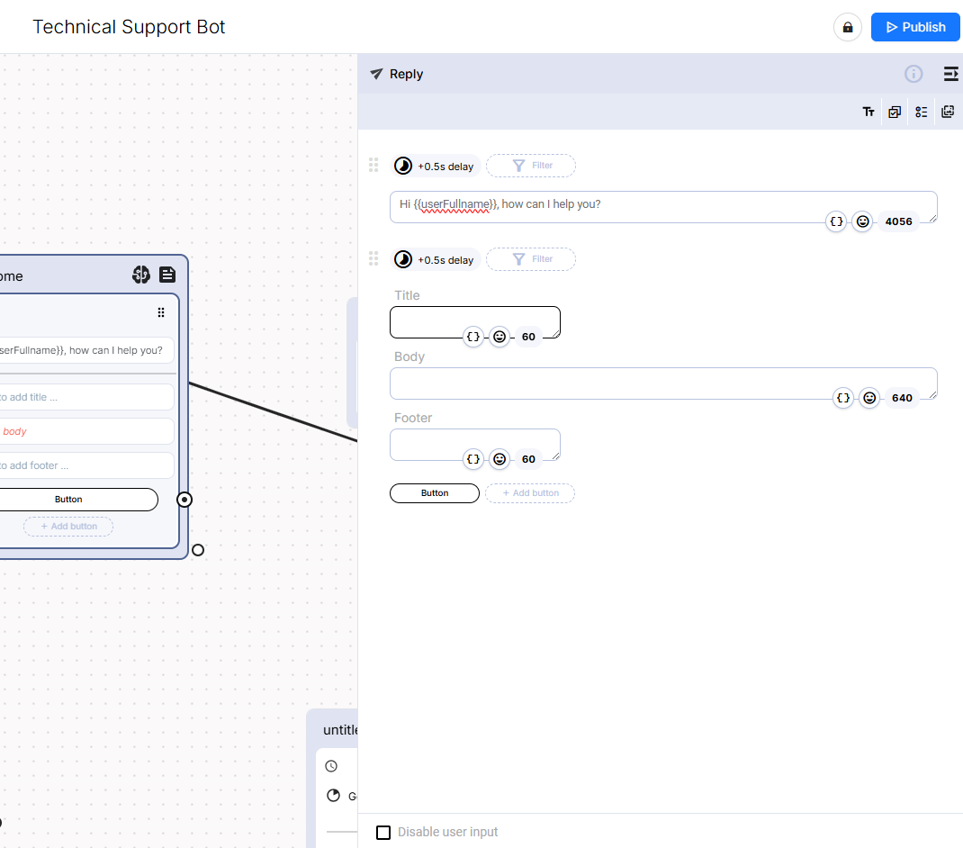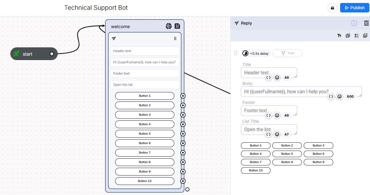 Adding buttons to your reply is very easy, too. Simply click on the 'Add button' to add more buttons, up to 10 buttons.