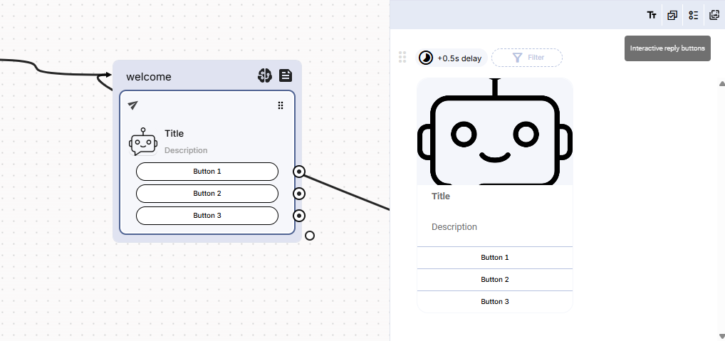 Adding images and buttons to your reply is very easy, too. Simply click on the 'Add button' to add more buttons, up to three buttons.