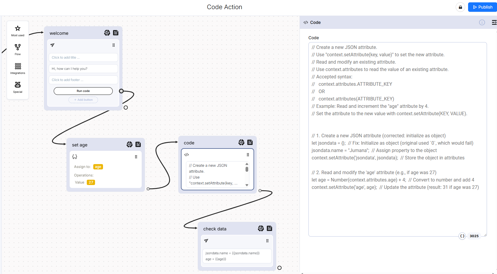 The Code Action provides a great method to maximize your flow's flexibility using JavaScript.