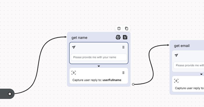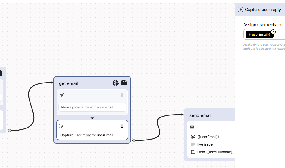 First, I will add “Capture User Reply” to ask for leads’ contact email addresses, as you can see in the image below: