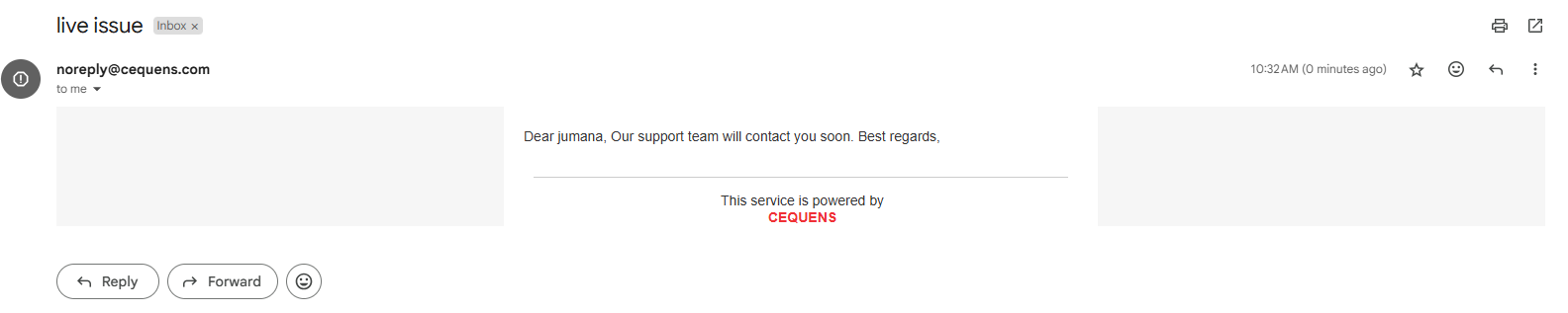 For the subject of the email, I will say “CEQUENS Support Team”.