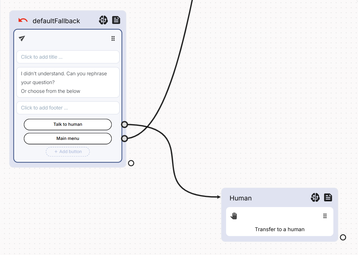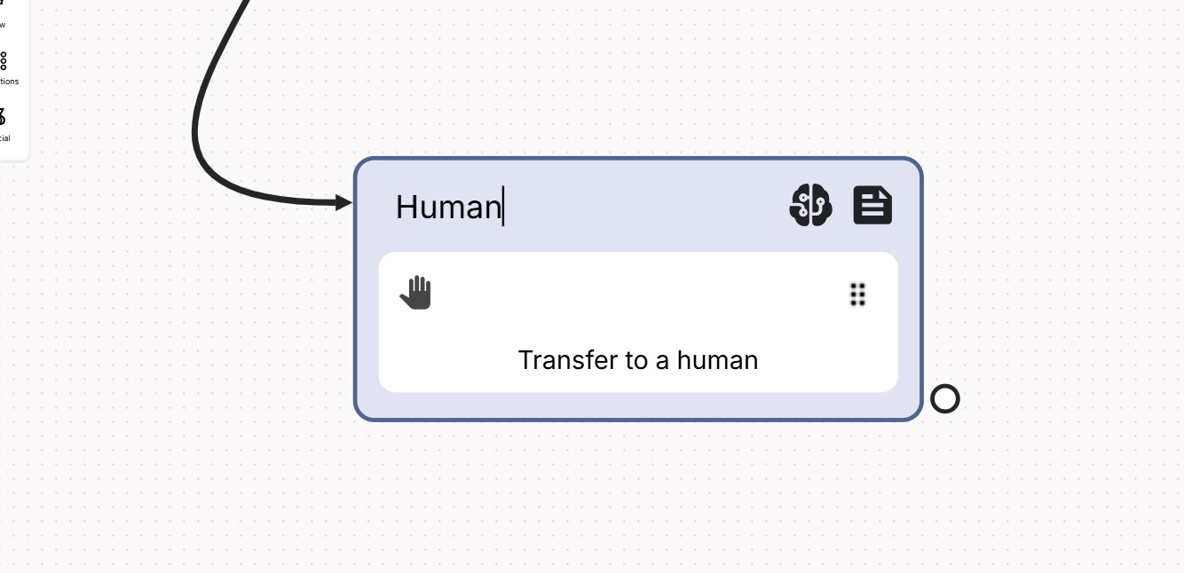 To create this flow, simply drag & drop the Human handover from the side menu to the stage.