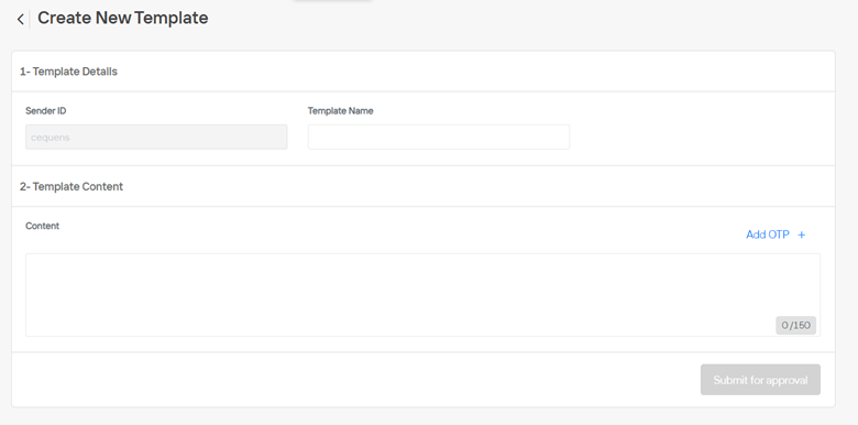- You will be directed to a page to input template details. Select the sender ID if you have multiple sender IDs, enter the template name, and provide the template content.