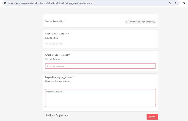 Surveys in CEQUENS Chat enable businesses to gather valuable feedback from customers, helping to measure satisfaction levels and identify areas for improvement.