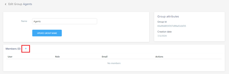 - If you choose to add members immediately, click the '+' icon to select users from the system and add them to the group.