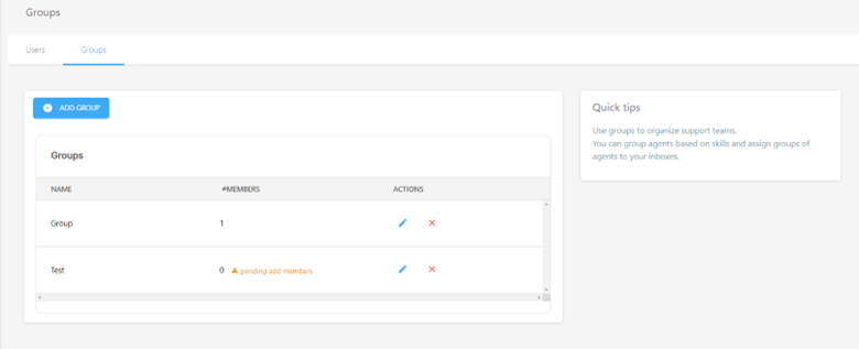 - Groups are utilized to organize support teams based on skills or other criteria and can be assigned to inboxes.