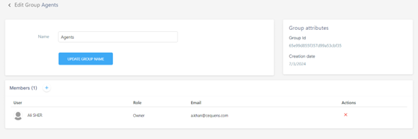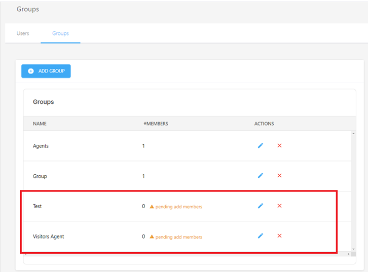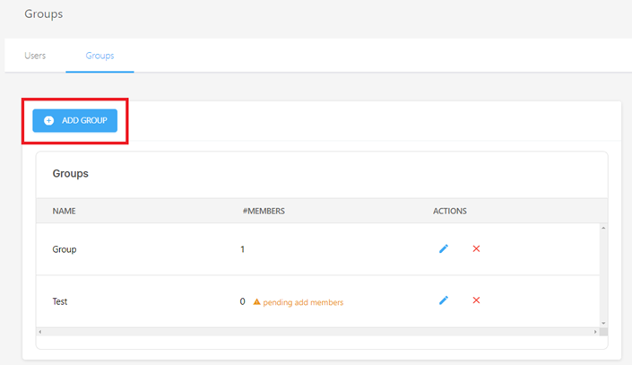 - The groups listing page displays all created groups along with the count of members, offering options to edit or delete a group.