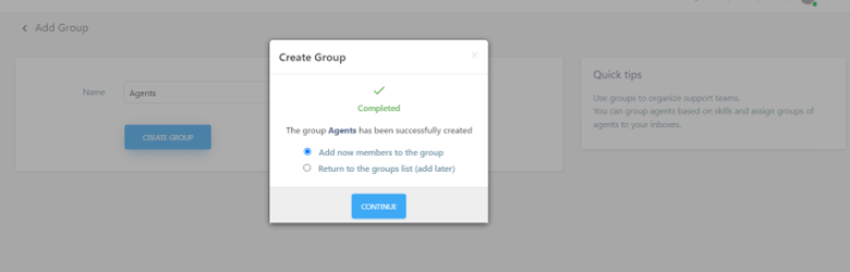 - If you opt to add members later, you'll be redirected to the group listing page to edit the group and add members later.